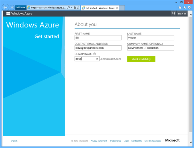 The other way – the one I am going to drill into – is using a Windows Azure Virtual Machine for certain development duties.